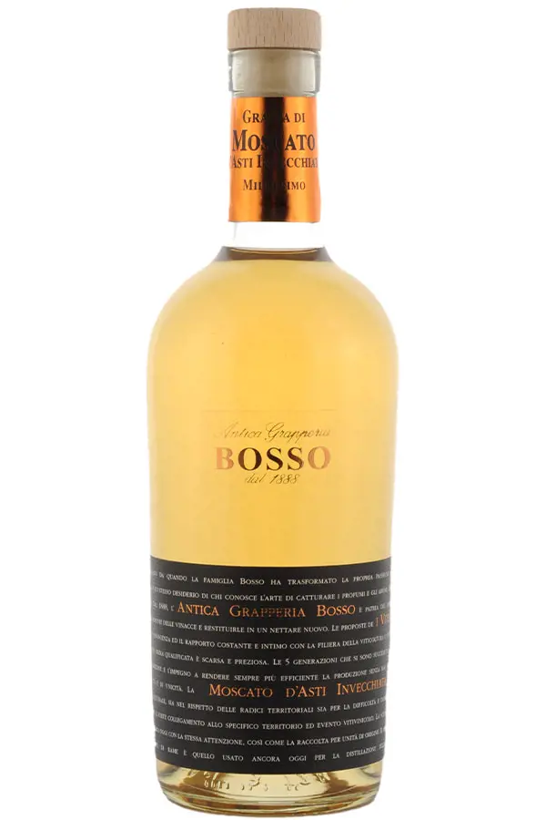Bosso, maestri distillatori da 5 generazioni. Più di un secolo è passato da quando la famiglia Bosso ha trasformato la propria passione in arte. Chi ruba lo spirito all’uva lo fa con lo stesso desiderio di chi conosce l’arte di catturare i profumi e gli aromi, lasciandone intatta la purezza e l’armonia. Dal 1888 l’Antica Grapperia Bosso è patria del mestiere di famiglia: imparare a catturare le armonie delle vinacce e restituirle in un nettare nuovo, manifestando attraverso le proprie proposte la conoscenza ed il rapporto costante e intimo con la filiera della viticoltura e vinificazione locale, proprio perché la materia prima qualificata è rara e preziosa. Le 5 generazioni che si sono succedute in azienda hanno mantenuto viva la tradizione e l’impegno a rendere sempre più efficiente la produzione senza mai tradire la propria storia, rendendo ogni grappa ricercata e di valore culturale, sia nel rispetto delle radici territoriali sia per la difficoltà e delicatezza della loro gestazione. La scelta e conservazione delle vinacce viene fatta ancora oggi con la stessa attenzione, così come la raccolta per unità di origine; il metodo discontinuo a vapore in caldaiette di rame è quello ancora usato per la distillazione delle grappe Bosso. Oggi l’arte della distillazione in casa Bosso viene tramandata da Pierluigi, che vanta una lunga esperienza alle spalle di oltre trenta campagne di distillazione.